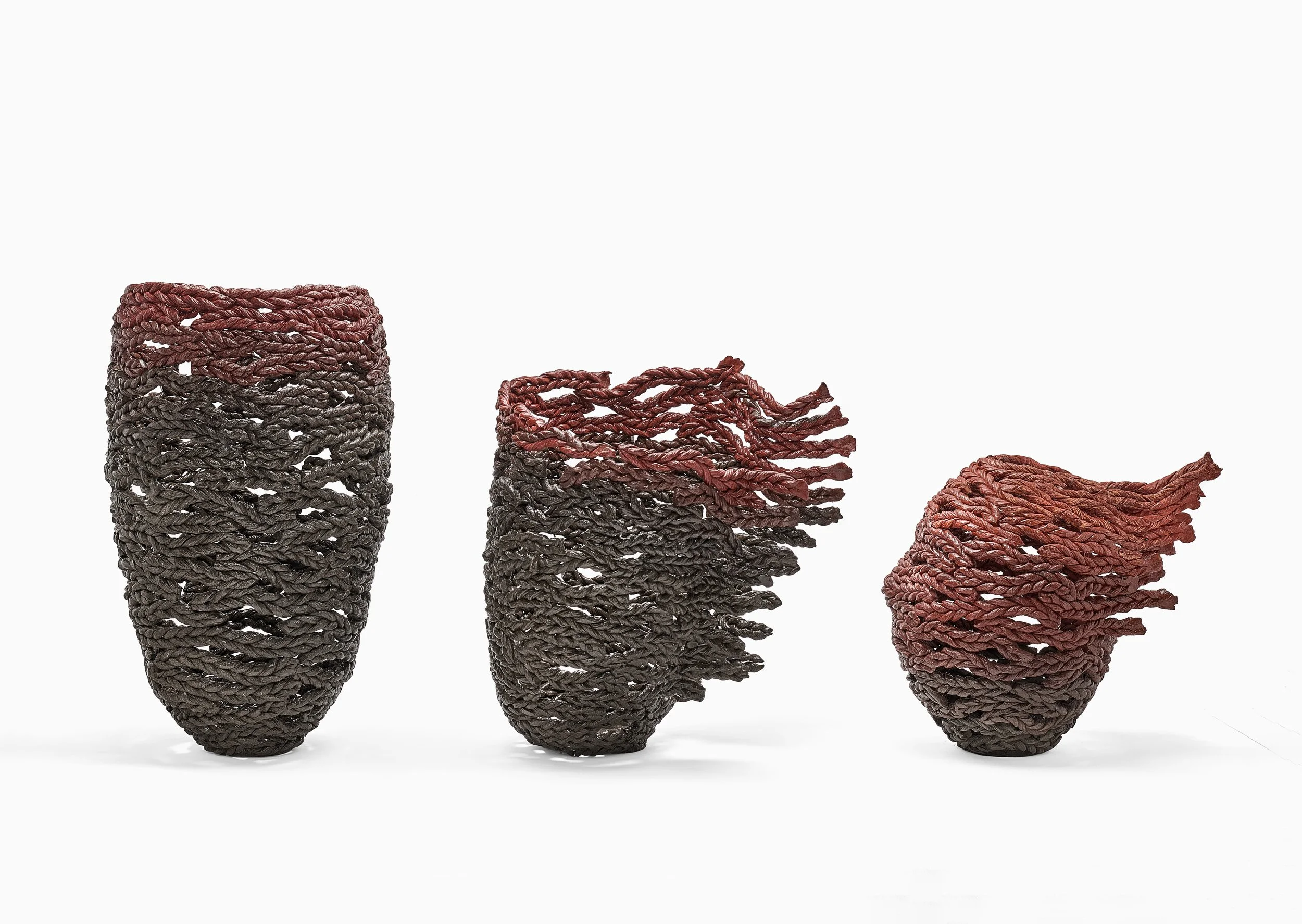 Hair as Freedom Series: Cut Plaits The Hair as Freedom series, Cut Plaits, is a deeply personal and heartfelt tribute to the Women, Life, Freedom movement that emerged in Iran in 2022. This movement, a pivotal moment in the fight for justice and equality, saw Iranian women bravely defy oppressive norms by removing their headscarves and cutting their hair—a poignant act of resistance that resonated deeply with me. Inspired by their extraordinary courage and unwavering determination, this three-piece ceramic series embodies the emotional and symbolic essence of their struggle. Each piece represents a stage in their collective journey: